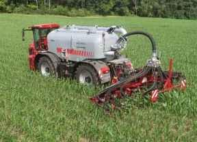 Schleppschuhverteiler legt Gülle in engerem Abstand ab