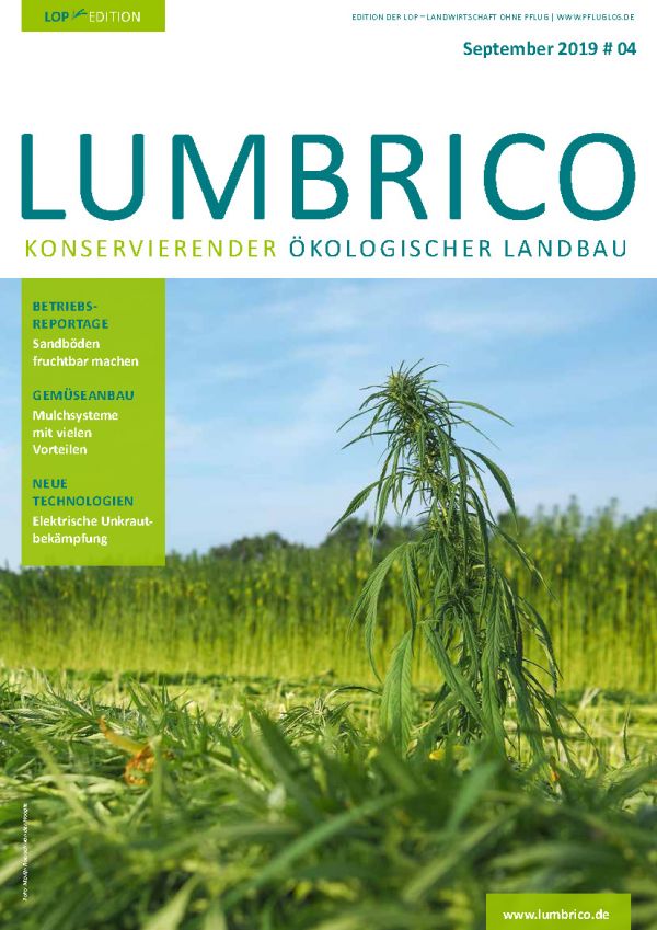 • Betriebsreportage: Pfluglos und ohne Pflanzenschutzmittel auf trockenen Sandböden in Nordbrandenburg; Die BioRanch Zempow setzt auf extensive Rinderhaltung und baut den Boden u.a. mit Tiefenlockerer und einer siebenfeldrigen Fruchtfolge mit Hanf, Leguminosen-Kleegras und Sommergetreide und weiteren Kulturen auf.