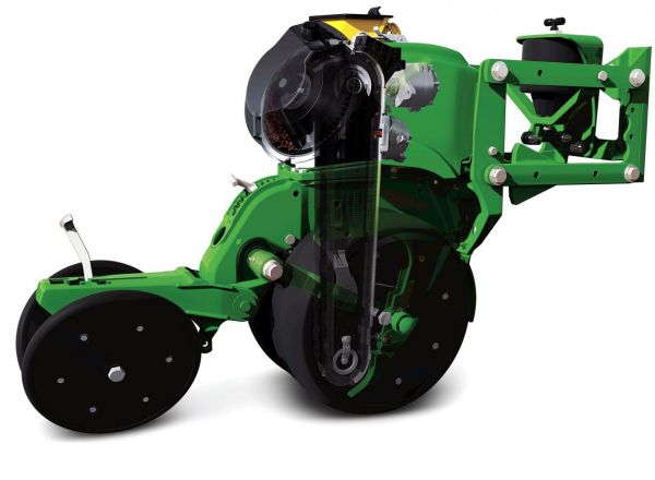 hohe Leistungspotenzial dieser Maschine bestätigt. Der DLG-Feldtest ergab eine Standardabweichung (Gradmesser für die Ablagegenauigkeit) von weniger als 25 mm bei einer Arbeitsgeschwindigkeit von 8 bis 20 km/h. Besonderes Merkmal der Maschine ist das umlaufende Bürstenband, das die Körner aufnimmt und auch bei hohen Fahrgeschwindigkeiten ohne Relativbewegung zum Boden abgibt. Die ExactEmerge ist mit einem elektrischen Antrieb ausgestattet, mit dem sich die Säeinheiten einzeln ansteuern lassen. Dies ermöglicht u.a. bei Kurvenfahrten eine präzise Kornablage. Darüber hinaus ist sie kompatibel mit vielen von John Deere für die Präzisionslandwirtschaft entwickelten FarmSight Lösungen und auch für die Direktsaat geeignet.