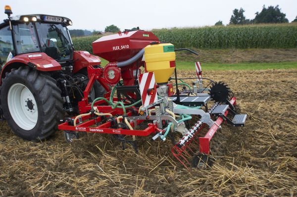 Ein kompakte Zinkensämaschine bietet die ertl auer GmbH aus Wildenau in Oberösterreich an. Die Säkombination wurde auf der Grundlage einer Güttler Großfederzahnegge SuperMaxx 30 mit einer Kunststoffwalze Güttler RollFix 3 m Synthetik Ultra entwickelt. Darauf wurde ein pneumatisches Sägerät Typ EPS 5 FLEX_S410 h mit 410-Liter-Behälter sowie ein Kleinsamenstreuer TP-Turbo-Jet zur Saatgutdosierung montiert. Entstanden ist so ein Universalgerät zur Saatbettbereitung, Unkrautbekämpfung und Stoppelbearbeitung, kraftstoffsparend und mit hoher Flächenleistung. Besonderheit ist, dass Grobsämereien über die Zinken des SuperMaxx tiefer abgelegt werden können, während Feinsämereien breitwürfig vor der Walze ausgebracht werden. Diese Säkombination kostet in 3 m Arbeitsbreite 19.118.- Euro zzgl. MwSt. und Fracht.