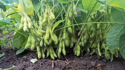 Sojabohnen auf dem Hochbeet