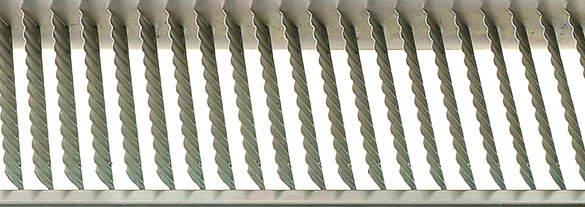 Für die meisten gängigen Mähdrescher bietet Agri Broker (AB) seit kurzem spezielle Gegendresch­leisten sowie High-Speed-, Weit-, Gleit- oder Kammkörbe an, mit denen sich Getreide und Raps auch mit weit geöffnetem Dreschspalt vollständig ausdreschen lassen sollen. Im Siebkasten sollen die AB High-Speed-Breitblechlamellensiebe (Bild) mit ihren aggressiven Stoßkanten und der Luftjet-Verstärkung eine schnellere Aussiebung der Körner auf der vorderen Obersiebhälfte und eine bessere Entstaubung ermöglichen. Die Überkehr ist dabei fast immer leer, und die Sieb- und Schüttlerverluste liegen nahe Null. Ein Kunde erreichte im letzten Jahr bei der Körnermaisernte mit einem AB Breitblechlamellenobersieb bis zu 152 t/h Durchsatzleistung.