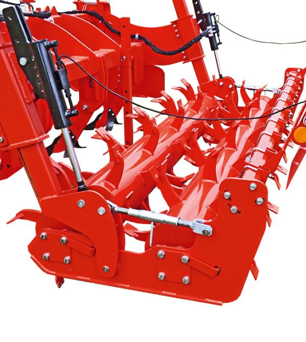 Die mehrreihig und versetzt angeordneten Paddel aus Hardox sorgen für einen kontinuierlichen Antrieb der beiden Walzen und eine intensive Mischung des Bodens. Auf leichteren, sandigen Standorten werden damit in einer Überfahrt Verdichtungshorizonte aufgebrochen, Rückstände oberflächennah eingemischt und gleichzeitig ein fertiges Saatbett erzeugt. Das macht den Tiefenlockerer zu einem vollwertigen Bodenbearbeitungsgerät. Lieferbar für die Maschio-Tiefenlockerer sind jetzt hydraulische Randblechbetätigungen, die ein komfortables Umstellen der Randbleche von Arbeitsposition in Transportposition mittels Steuergerät vom Schlepper ermöglichen. Mittlerweile erstreckt sich die Produktpalette der Tiefenlockerer vom Pinocchio CSS mit einer Arbeitsbreite von 1,3 m bis hin zum Magnum CSS mit einer Arbeitsbreite von 4,0 m für Schlepper bis 400 PS.