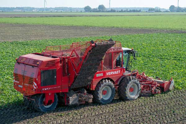 Der sechsrädrige Rübenroder „Beet Eater EVO“ von Vervaet ist eine Weiterentwicklung des Beat Eaters. Dieser überrollt mit 6 zueinander versetzten Rädern auf drei Achsen den Boden auf der Arbeitsbreite komplett. Mit der nur einmaligen Überrollung soll eine optimale Bodenschonung erreicht werden soll. Der neue Mercedes MTU-Motor hat nun eine Leistung von 653 PS, die auch bei geringer Motordrehzahl anliegt. Am Rodeaggregat des Rübenrodes wurden beispielsweise die Tiefenregulierung sowie die Sensoren für den Lenkautomaten überarbeitet und optimiert. Die sechs- und neunreihigen Hochleistungsroder von Vervaet verfügen jetzt über „Q-View", ein 360-Grad-Kamerasystem in der Kabine. Die Kabinenpfosten und die Seiten der Erntemaschine sind nun rot lackiert.