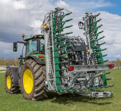 Das Einachsgüllefass besitzt dafür am Drehpunkt der Achse eine Vorrichtung zum Anbau von Arbeitsgeräten. Es kann mit deutlich größeren Reifen (900 / 60R32) als bei Fässern mit Achsschenkellenkung gefahren werden. Durch die Parallelstellung der Reifen wird weniger Gegendruck und daher eine leichtere Überrollbarkeit erzeugt, der Zugkraftbedarf sinkt. Somit wird die Fläche durch die Breitreifen nur je einmal überfahren, wobei der Boden über die gesamte Arbeitsbreite des Fasses von 4 m gleichmäßig rückverfestigt wird. Drehpunkt der Achse eine Vorrichtung zum Anbau von Arbeitsgeräten.