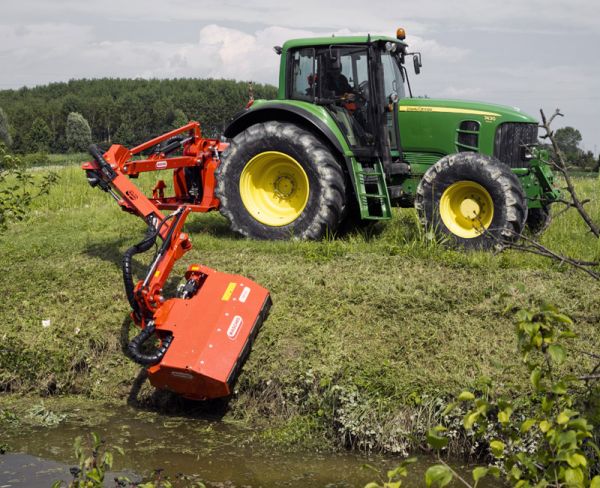 Das Programm von Maschio Deutschland wird um die Böschungsmulcher Cristina und Katia erweitert. Die kompakten und leistungsstarken Geräte haben Auslegerarmlängen von 5,05 m, 5,50 m und 6,50 m. Der mit robusten Hammerschlegeln ausgestattete Mulchkopf hat beim Modell Cristina eine Arbeitsbreite von 1,00 m und beim Modell Katia von 1,25 m. Der Böschungsmulcher Katia für Schlepper ab 70 PS verfügt über einen Hydraulikölhaushalt von 220 Liter. Der komplette Auslegerarm kann um 92° nach hinten geschwenkt werden. Mit der Avant-Geometrie kann der äußere Ausleger um bis zu 1,90 m nach vorne teleskopiert werden und befindet sich damit im Sichtbereich des Fahrers. Die Auflagedruckregelung bewirkt eine optimale Anpassung des Auslegers bei unebenem Gelände. Sollte ein Hindernis übersehen worden sein, schützt der hydraulische Anfahrschutz den Ausleger vor Beschädigungen. Als Zubehör für den Mulcher sind