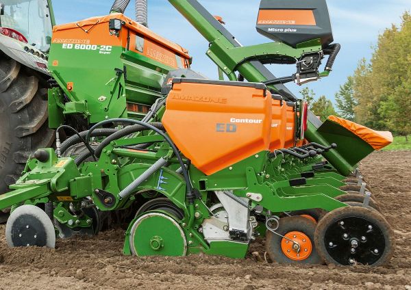 Nach über 25 Jahren Erfolgsgeschichte präsentiert Amazone auf der SIMA 2015 die dritte Generation der Einzelkornsämaschine ED. Die neue ED enthält zahlreiche Neuerungen vom Antrieb der Vereinzelung und Düngerdosierung über die Elektronik bis hin zum Design. Bei der Variante Profi ist jetzt auch eine ISOBUS-Steuerung verfügbar, die u. a. mit der automatischen Teilbreitenschaltung GPS-Switch genutzt werden kann. Das bewährte System der Unterdruckvereinzelung wurde von der Vorgängergeneration übernommen. Dabei sind Reihenabstände zwischen 45 und 80 cm möglich. Neben Mais können Zuckerrüben, Raps, Sonnenblumen und Körnerleguminosen in Einzelkornsaat bestellt werden. Als Einstiegsvariante weiterhin lieferbar ist die ED Spezial mit mechanischem Antrieb.
