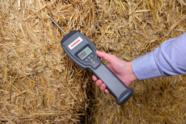 Beim Umgang mit Heu und Stroh spielt der Feuchtegehalt eine entscheidende Rolle. Zur kommenden Erntesaison bietet Claas deshalb ein überarbeitetes Meßgerät an. Der Feuchtemesser für Heu, Silage und Stroh hat jetzt einen automatischen Dichteausgleich. Er verfügt dazu über einen Drucksensor an der Sonde. Beim Einstechen der Lanze in den Ballen wird automatisch die Dichte des Ballens ermittelt. Das Gerät bezieht den Wert direkt in die kapazitive Messung mit ein, das Ergebnis wird entsprechend der Dichte des Ballens berechnet. Der integrierte Speicher bietet Platz für insgesamt 1.000 Messwerte. Ein USB-Anschluss ermöglicht das einfache Herunterladen der Werte sowie ein Update der Software. Mit dieser Ausstattung eignet sich der neue Feuchtemesser für den professionellen Einsatz vor allem im Stroh- und Heuhandel sowie beim Presseneinsatz.