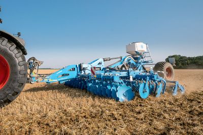 Der Frontbehälter Solitair 23 von Lemken ist die Grundlage für ein modulares Säsystem. Dieser lässt sich mit der neuen Solo-Säschiene Optidisc 25 und einer Kreiselegge zu einer wendigen und kompakten Drillkombination verbinden, so dass die Gewichte auch bei kleineren Traktoren optimal verteilt sind. Der Fronttank ist außerdem zum Ausbringen von Dünger mit dem Einzelkornsägerät Azurit einsetzbar. Die parallel geführten Doppelscheibenschare des Optidisc 25 zeichnen sich durch wartungsfreie Drehgummilagerungen aus. Der Schardruck der neuen Säschiene lässt sich wahlweise mechanisch (max. 45 kg) oder hydraulisch von der Traktorkabine aus auf max. 70 kg einstellen. Die Optidisc 25 wartet mit einer in die Verteiler integrierten Fahrgassenschaltung auf, die verschiedene Fahrgassenrhythmen ermöglicht. Der Frontbehälter Solitair 23 hat mit 1.900 l ein hohes Fassungsvermögen und ist trotzdem für eine gute Sicht flach gebaut. Die neue Säschiene wird es klappbar in 4,0 und 4,5 m Arbeitsbreite ab 2019 geben.