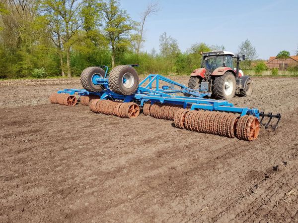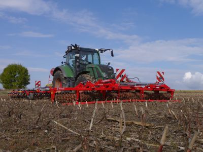 Das Walzenprogramm der Gebr. Tigges GmbH & Co. KG wird mit der Hydraulikwalze Deltamax ergänzt. Die hydraulisch klappbare Ackerwalze ist zunächst in einer Arbeitsbreite von 12,30 m verfügbar und serienmäßig mit einer Druckluftbremsanlage ausgestattet. Die fünfteilige Walze verfügt über eine hydraulisch wirkende Vorspanneinrichtung zur gleichmäßigen Druckverteilung über die gesamte Arbeitsbreite. Gleichzeitig kann sich jedes Walzensegment flexibel an die jeweilige Bodenkontur anpassen. Optional sind auch hydraulisch verstellbare Vorwerkzeuge lieferbar. Die neue Walze ist mit den scharfkantigen Cambridge-Ringen und einem Durchmesser von 65 cm ausgestattet. Außerdem stehen auch die Camcross-Ringe von Tigges mit zusätzlichen Querschneiden zur Auswahl. Diese zerquetschen die Maisstoppeln und wirken damit vorbeugend gegen den Maiszünsler.