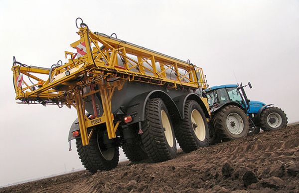 Der holländische Marktführer für Pflanzenschutzgeräte, Dubex aus Stadskanaal, hat erstmals eine Anhängespritze Maxtor II mit 16.500 l Fassinhalt ausgeliefert. Käufer dieser Sonderanfertigung ist ein Großbetrieb in Mecklenburg-Vorpommern. Durch das große Fassvolumen können mit einer Füllung (Aufwand 165 l/ha) etwa 100 ha Fläche gespritzt werden. Ausgerüstet wurde die Maschine mit einem 30 m breiten Spritzgestänge mit variabler Geometrie. Durch die sensorgeführte Gestängeanwinkelung wird eine exakte Anpassung an die Geländekontur erreicht. Der Behälter ist komplett aus Edelstahl hergestellt, die LKW-Tandemachsen mit Luftfederung und Allradlenkung sowie die Bereifung 650/65 R 42 sorgen für gute Fahreigenschaften auf Straße und Acker.