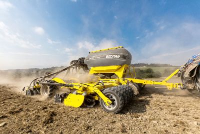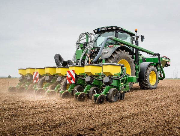 John Deere erhält für das Einzelkornsägerät ExactEmerge auf der SIMA 2015 eine Goldmedaille. Selbst bei höchsten Sägeschwindigkeiten bis zu 20 km/h soll damit noch eine präzise Kornablage möglich sein. Ermöglicht wird dies durch ein patentiertes Vereinzelungsverfahren, das ein Verspringen oder Verrollen der Körner in der Saatrille verhindern kann. Dazu wurde ein pneumatisches Säaggregat mit einem als Bürste ausgelegten umlaufenden Band kombiniert. Dieses Bürstenband nimmt die Körner vorsichtig auf und legt sie bodennah direkt in der Saatrille ab, relativ in Ruhe zur Bodenoberfläche. Bisher war diese „Nullablage“ nur von mechanischen Rübenlegemaschinen bekannt, mit ExactEmerge können nun die meisten Kornformen und -größen inkl. Mais selbst bei hoher Arbeitsgeschwindigkeit exakt abgelegt werden. Mit 3 m Transportbreite ermöglicht das achtreihige Sämaschinenkonzept auch eine Unterfußdüngung, gespeist von einem Fronttank. Die ExaktEmerge kann durch eine aktive Anpressdruckregelung der Reiheneinheiten auch für die Direktsaat eingesetzt werden. Für die Energieversorgung des elektrischen Anbaugeräts wird ein Zapfwellengenerator verwendet (alternativ auch ein John Deere 6RE-Traktor).
