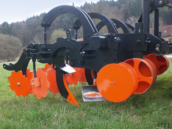 Mit dem Striperator bietet der österreichische Anbieter Lagrot ein vielseitig einsetzbares Strip Till Gerät an, das sich durch einen einfachen und robusten Aufbau auszeichnet. Es lässt sich auf Reihenweiten zwischen 45 und 75 cm einstellen und hat eine Arbeitsbreite von 2,80 m. Die Arbeitselemente können im Baukastensystem sowohl starr am Rahmen als auch mit Doppelschwingenaufhängung geliefert werden. Besonderheit der Arbeitselemente ist die dreifache Schneidscheibe vorn; diese kann optional mit einem Räumschar kombiniert werden. Das Räumschar hobelt den Boden auf eine Tiefe von nur 10 mm vollständig ab und kann somit selbst eine etablierte Grasnarbe sauber räumen. Dadurch kann der Striperator auch auf mit Klee und Gras begrünten Flächen zum Einsatz kommen. Der Konstrukteur Michael Prassl sieht deshalb Einsatzmöglichkeiten vor allem im Ökolandbau, zumal der Striperator während der Kulturzeit auch als Hackmaschine eingesetzt werden kann, um die bewachsenen Grünstreifen zwischen den Reihen zu pflegen.