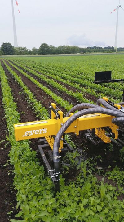 Mit der Chopstar-Hybrid Tellerhacke bietet Einböck stellt eine neue Lösung für das Hacken von Mulchsaaten mit vielen organischen Rückständen vor. Dazu werden am Chopstar-Hackrahmen drehbare Teller mit einem Durchmesser von 400 mm montiert, die knapp unter der Oberfläche durch den Boden schneiden. So werden die Wurzeln der Unkräuter durchgeschnitten und die Unkräuter knapp unter der Oberfläche abgetrennt; die Mulchschicht bleibt dabei weitgehend erhalten. Vor den Tellern befinden sich Spurkranzräder, die in den Boden einschneiden und damit Verstopfungen vorbeugen. Das neue System soll sich speziell für Lebendmulchsysteme eignen und auch größere Unkräuter gut bekämpfen. Ein weiter Vorteil besteht darin, dass die Teller unter den Blättern arbeiten und es damit auch bei weiter entwickelten Kulturpflanzen kaum zu Beschädigungen kommt. Durch den Anbau am bewährten Chopstar-Rahmen lässt sich die Tellerhacke mit der automatischen Kameralenkung Row-Guard kombinieren. Neu für die Chopstar-Hacke ist jetzt außerdem eine GPS-gesteuerte Aushebung, wobei die einzelnen Hackaggregate hydraulisch und exakt am vordefinierten Vorgewende ausgehoben werden.
