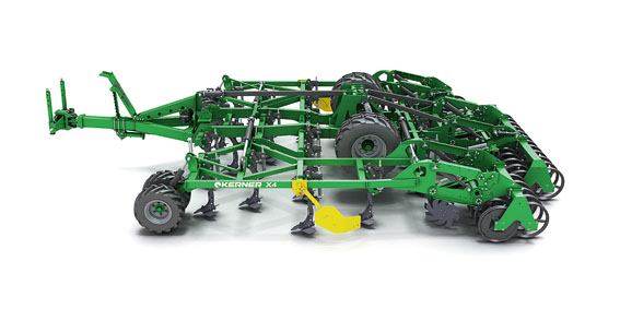Der neue Universalgrubber Kerner X4 ist auf einem 4-balkigen Rahmenkonzept(Strichabstand 270 mm) mit integriertem Fahrwerk aufgebaut. Die Tiefeneinstellung der Arbeitswerkzeuge (5–30 cm) erfolgt voll hydraulisch über eine Parallelverstellung (Serie). In Kombination mit dem neuen „Connect 40“-Schnellwechsel-Scharsystem (optional) lassen sich alle Verschleißteile werkzeuglos wechseln. Das Fahrwerk dient ergänzend zur Tiefenführung, kann aber in Verbindung mit der Walzenschnellwechselkonsole (Serie) auch die komplette Tiefenführung übernehmen. Die Walzen lassen sich schnell und einfach an- und abbauen, der Grubber kann damit auch für eine „Herbstfurche“ ohne Walze eingesetzt werden. Neben der bekannten Kerner-Crackerwalze steht für leichte Bodenverhältnisse die neue Doppelwalze mit zwei Walzenreihen (Ø 600mm) zur Wahl. Der Grubber X4 wird ab Sommer 2016 in Arbeitsbreiten von 4,6 bis 6,3 m angeboten.