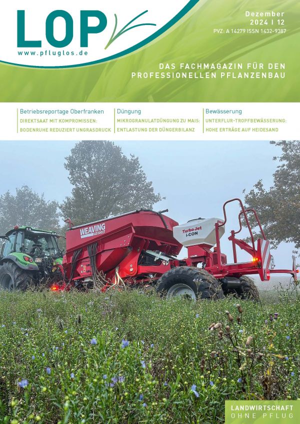 In der Fachzeitschrift LOP LANDWIRTSCHAFT OHNE PFLUG finden Sie Artikel mit qualifizierten und praxisorientierten Informationen über den professionellen Acker- und Pflanzenbau - von anerkannten Experten aus Wissenschaft und Praxis geschrieben. Schwerpunkte bilden technische Entwicklungen und Neuerungen, ökonomische und ökologische Gesichtspunkte im Acker- und Pflanzenbau. Fachbeiträge über Fruchtfolgen, Pflanzenschutz, Düngestrategien, Sortenwahl sowie Aspekte einer angepassten Technik speziell für Betriebe mit Direktsaat und konservierender Bodenbearbeitung runden das Profil ab.