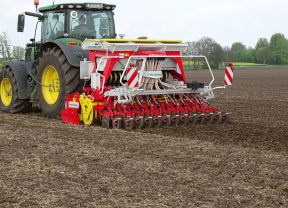 Das Pöttinger Zwischenfrucht-Säaggregat Tegosem wird in Kombination mit den Grubbern oder Scheibeneggen des Herstellers angeboten. Das pneumatische Gerät ist komplett mit Anbaukonsole und Beladesteg ausgestattet. Das Spektrum der