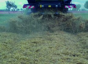 Um das Abtrocknen des Strohs nach dem Mähdrusch zu beschleunigen, bietet Agri Broker einen Mähdrescher-Zetter an. Zwei hydraulisch angetriebene Drehverteiler legen das Stroh damit bis zu 7 Meter breit und flach ab. Dank des flachen