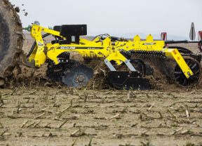 Die Wesenberg Maschinenbau GmbH aus dem Emsland hat eine neue Doppel-Messerwalze kon­struiert, die zwei einzelne Walzen mit 450 und 550 mm Durchmesser kombiniert. Der federgelagerte und patentierte Abstreifer knickt die Stoppeln bereits
