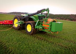 Mit dem Forschungsprojekt ­GridCON hat John Deere einen über 400 PS starken Elektrotraktor entwickelt, der über ein Kabel mit Strom versorgt wird. Die Kabeltrommel mit über 1.000 m Reichweite kann über 300 kW übertragen. Die