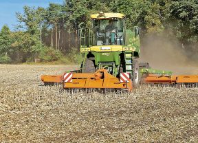 Für den Hochleistungs-Mähaufbereiter Big M 450 bietet Krone jetzt die Alternativ-Ausrüstung mit Schlegelmulchern an. Gemeinsam mit dem niederländischen Spezialisten Van Wamel B.V. wurde der Mulcher-Bausatz „Perfect TriGant“ ent­wickelt.