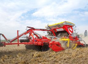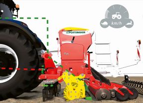 Das Konzept Multiline wurde weiterentwickelt, wobei Pöttinger jetzt einen neu entwickelten Reifen­packer einsetzt, der das Gewicht der Maschine trägt. Multiline ermöglicht eine kostengünstige Mulchsaattechnik, wobei der Grubber Synkro