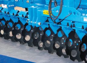 Auf der Agritechnica stellte Bremer Maschinenbau eine neuartige gelochte Scheibe an der Powerdisc-Kurzscheibenegge vor. Diese Eggenscheiben mit Aussparungen bringen vor allem auf nassen Böden Vorteile, weil es kaum noch Anhaftungen von