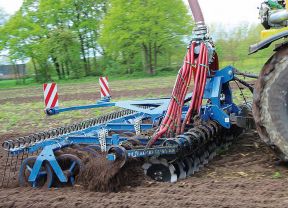 Mit der Kurzscheibenegge Rebell profiline 300 hat Köckerling ein Gerät entwickelt, die Arbeitstiefen von bis zu 18 cm erreicht. Ausgerüstet ist die Kurzscheibenegge mit 620 mm großen Scheiben, die einzeln an massiven Blattfedern aufgehängt