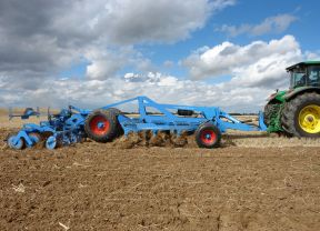 Der neue vierreihige Grubber Karat 12 von Lemken kann den Boden bis zu einer Tiefe von 30 cm lockern. Es gibt acht Scharvarianten, darunter neben schmalen Meißelscharen und ganzflächig schneidenden Flügelscharen auch die