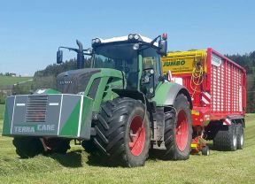 Die neu gegründete TERRA CARE GmbH hat ein neuartiges Reifendruckkontrollsystem entwickelt, das auf den Erfahrungen des österreichischen Lohnunternehmens Schausberger KG beruht. Die Besonderheit daran ist ein patentierter Fronttank, der