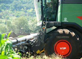 Für die Fendt-Mähdrescher hat Trelleborg in Zusammenarbeit mit AGCO Fendt das System „Variable Inflation Pressure“ (VIPTM) ent­wickelt. Es handelt sich dabei um ein intelligentes Komplettrad, das den Druck des Mähdrescher-Reifens